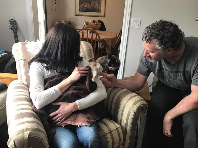Fort heureusement, Charlie n'était pas tout seul dans cette terrible épreuve. Carla et son mari venaient tout juste d'adopter un petit chaton récupéré devant leur maison et qu'ils ont prénommé Dora. La chatte a aussitôt pris l'agneau orphelin sous son aile, lui faisant des câlins et jouant avec lui après que Charlie a été opéré pour soulager ses blessures.