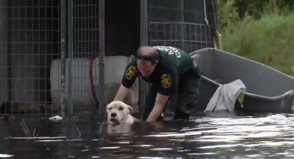 Alors qu'ils étaient sur une route en train de chercher leur chemin au milieu des décombres et de l'eau, ils ont entendu des chiens "pleurer", comme s'ils étaient en grave danger. Et, en effet, ils ont peu de temps après découvert quatre chiens en danger, piégés dans des niches inondées, et un cinquième coincé sur une table de pique-nique.Melissa et James ont alors fait le tour du quartier pour essayer de retrouver les propriétaires des chiens, dans l'espoir de pouvoir les conduire en sécurité. Malheureusement, un voisin les a informés que leurs propriétaires avaient quitté la zone avant la tempête, en laissant leurs chiens sans eau, ni nourriture ni abri.