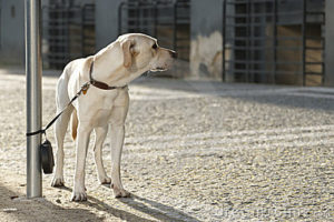 Un Labrador attaché à un poteau (image d’illustration). Source : Chicken Smoothie