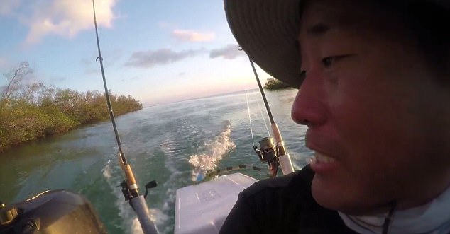 Il s'aperçoit alors qu'il s'agit d'un iguane perdu en mer. L'animal se met à nager en direction du bateau dès que celui-ci se trouve à sa portée. Les iguanes se déplacent souvent en nageant autour des îles de Floride, mais le pêcheur sait qu'ils ne s'éloignent jamais autant de la rive.Il décide alors de sauver le reptile d'une noyade certaine en l'aidant à monter sur son kayak. Visiblement épuisé, l'animal prend place sur l'embarcation et se laisse ramener près du rivage.