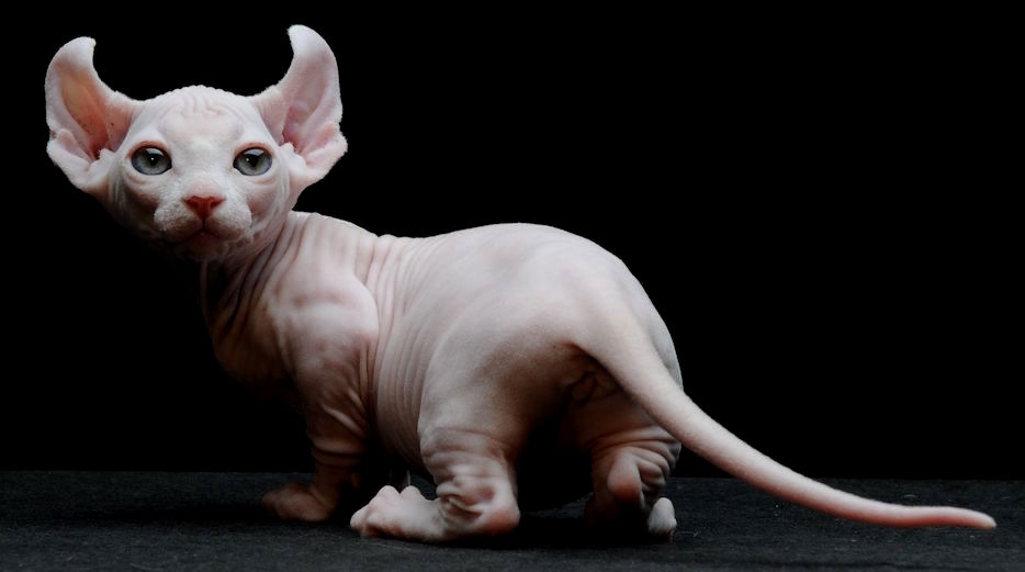 Le Bambino descend d'un Munchkin et d'un Sphynx, et à l'instar de ses ancêtres, possèdent de petites pattes et une peau complètement nue. La race est née en 2005, aux États-Unis.