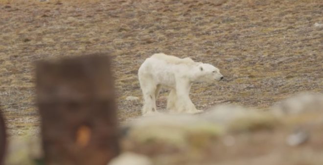 Triste réalité capturée par le photographe du National Geographic,Paul Nicklen. Alors que lui et une équipe de l'associationSea Legacy se trouvaient sur l'île de Baffin, dans l'archipel arctique canadien, ils ont fait une rencontre bouleversante : celle d'un ours rachitique et décharné en quête de nourriture. L'animal se traînait avec difficulté dans un environnement dépourvu de glace. Après avoir fouillé dans une poubelle, en vain, il s'est effondré, la bave aux lèvres.