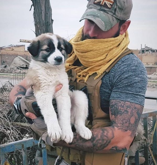 Sean Laidlaw, désormais à son compte dans la sécurité privée, officiait en février 2018 pour l'U.S. Army en tant que démineur lorsqu'il a entendu des pleurs en provenance des ruines d'une école tout juste bombardée. Il a alors découvert un petit chiot, aux côtés de quatre autres, hélas déjà morts.